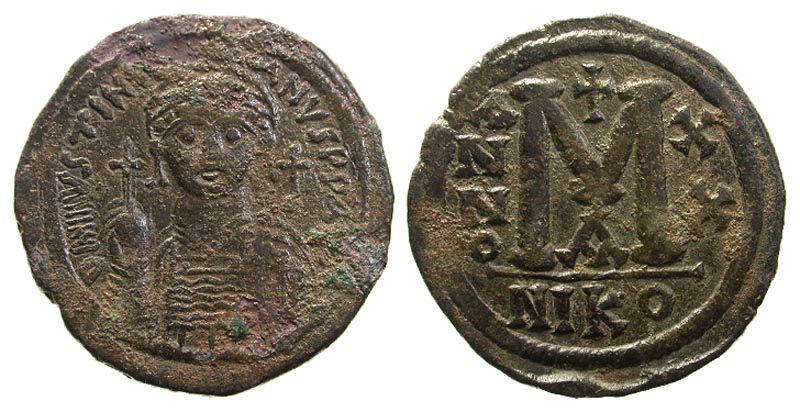 Lot 5-175. Justinian I. 527-565. Æ Follis. Nicomedia, year 20 = 546/547.