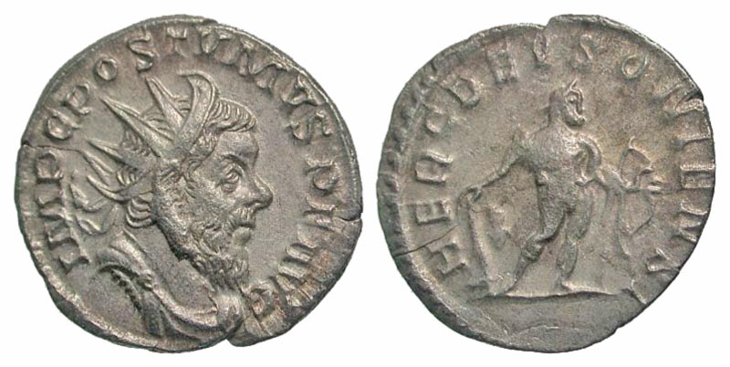 Lot 39-171. Postumus. Romano-Gallic Emperor, A.D. 260-269. AR antoninianus. Treveri mint, Struck A.D. 260-261. Ex George Spradling collection.