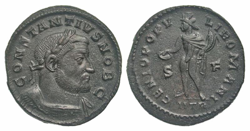 Lot 39-184. Constantius I. As Caesar, A.D. 293-305. AE follis. Trier mint, Struck A.D. 302-303.