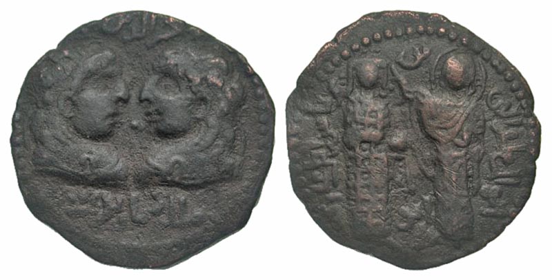 Artuqids of Mardin. Najim al-Din Alpi. 547-572/1152-1176. AE dirhem (33.6 mm, 15.27 g, 10 h). A.H. 547-572 / A.D. 1152-1176. Confronted draped male busts / Byzantine emperor standing facing, being crowned by the Virgin Mary. S/S 28; Album 1827.3. Fine.