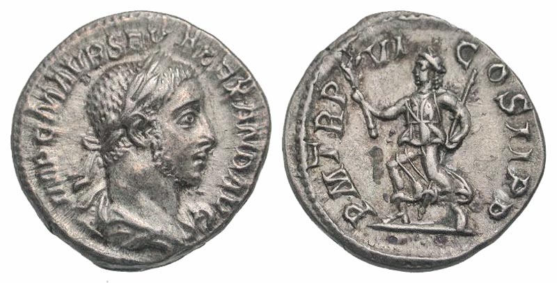 Lot 44-169. Severus Alexander. A.D. 222-235. AR denarius. Rome mint, struck A.D. 227. Ex Elwood Rafn collection.