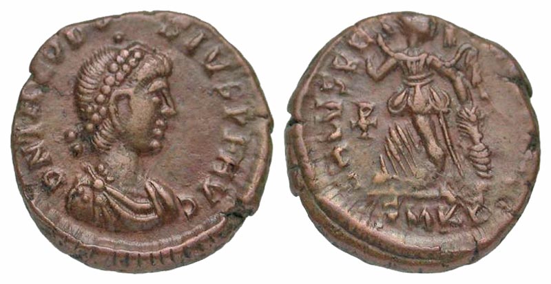 Lot 44-208. Theodosius I. A.D. 379-395. AE 4. Cyzicus mint, struck A.D. 388-392. Ex Elwood Rafn collection.