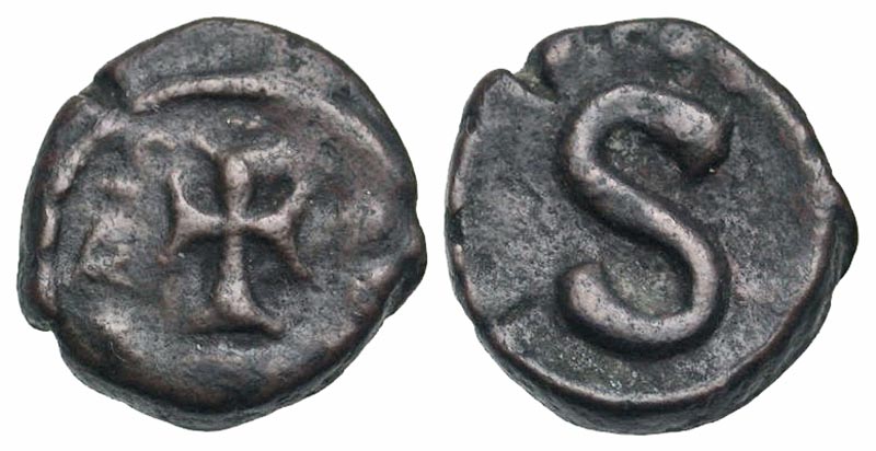 Heraclius. 610-641. AE 6 nummi (14.8 mm, 2.71 g, 12 h). Alexandria mint. dd m hERACLS (or similar), cross potent on base / Large S. SBV 862; DOC 198. aVF. Scarce.