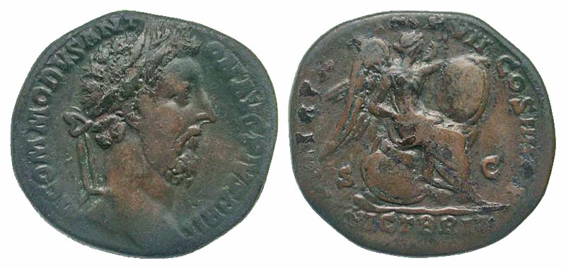 Lot 52-197. Commodus. A.D. 177-192. AE sestertius. Rome mint, struck A.D. 184-185. Scarce.