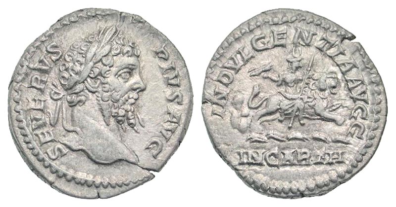 Lot 52-199. Septimius Severus. A.D. 193-211. AR denarius. Rome mint, struck A.D. 203.