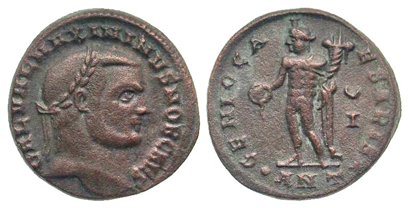 Lot 52-238. Maximinus II Daza. As Caesar, A.D. 305-308. AE follis. Antioch mint, struck A.D. 308.