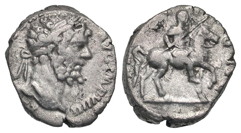 Lot 56-139. Septimius Severus. A.D. 193-211. AR denarius. Rome mint, struck A.D. 197. Scarce.