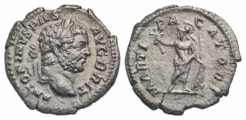 Lot 56-141. Caracalla. A.D. 198-217. AR denarius. Rome mint, struck A.D. 212-213.