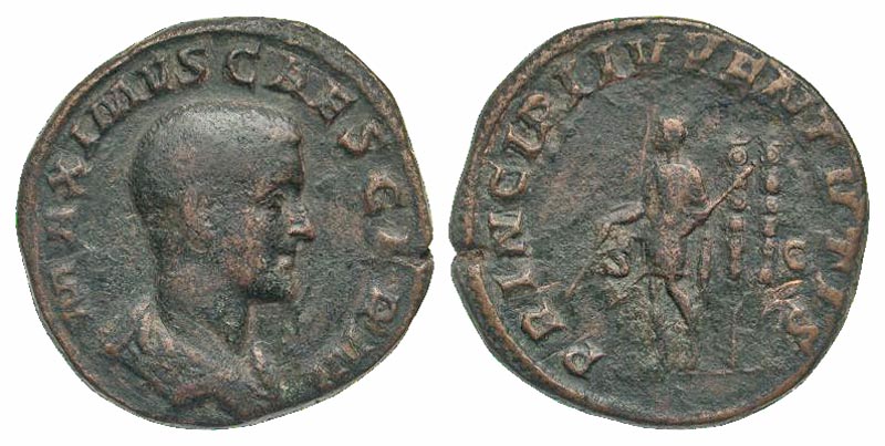 Lot 56-144. Maximus. Caesar, A.D. 235-238. AE sestertius. Rome mint, struck A.D. 236-7. Rare.