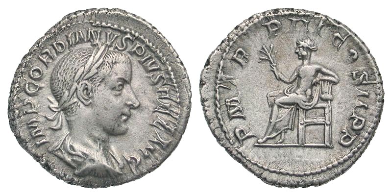Lot 56-145. Gordian III. A.D. 238-244. AR denarius. Rome mint, struck A.D. 241.