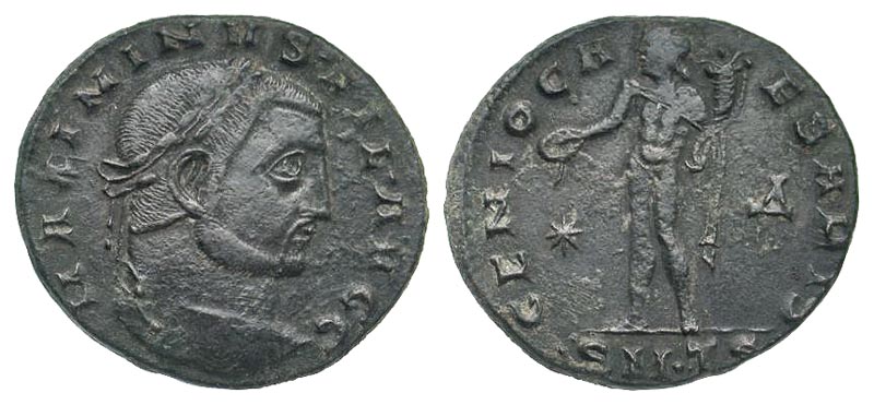 Lot 56-155. Maximinus II Daza. As Filius Augustorum, A.D. 308-309. AE follis. Thessalonica mint, struck A.D. 308.