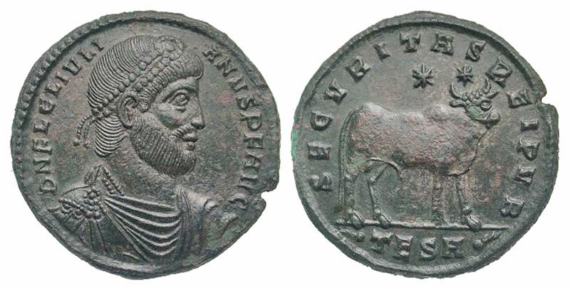 Lot 56-167. Julian II. A.D. 360-363. AE follis. Thessalonica mint, struck A.D. 361-363.