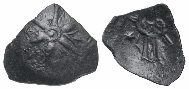 John Comnenus-Ducas. Emperor, 1237-1242. BI trachy (16.5 mm, 0.53 g, 12 h). Thessalonica mint. Star / The Virgin standing facing, orans; stars flanking. SBV 2218; cf. DOC 33. aVF. Rare.