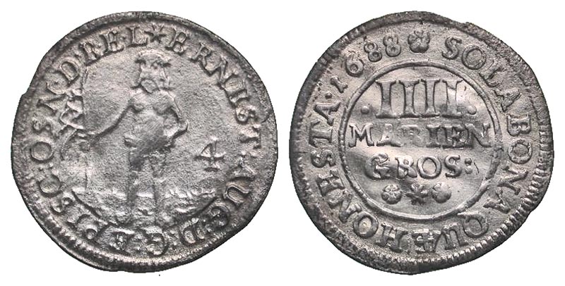 Lot 56-273. German States, Brunswick-Luneburg-Calenberg. Ernst August. 1679-1698. AR 4 mariengroschen.