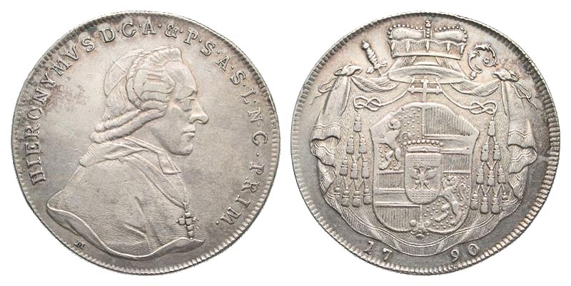 Lot 56-279. Austria, Salzburg. Hieronymus von Colloredo-Waldsee. Archbishop, 1772-1803. AR thaler. 1790.