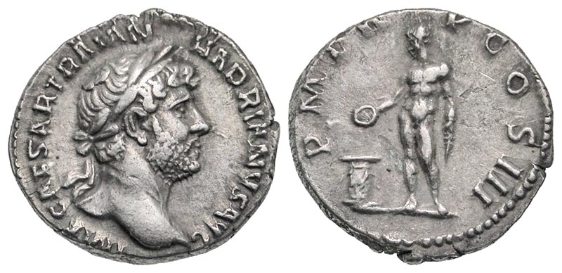 Lot 59-191. Hadrian. A.D. 117-138. AR denarius. Rome mint, struck A.D. 119-125.
