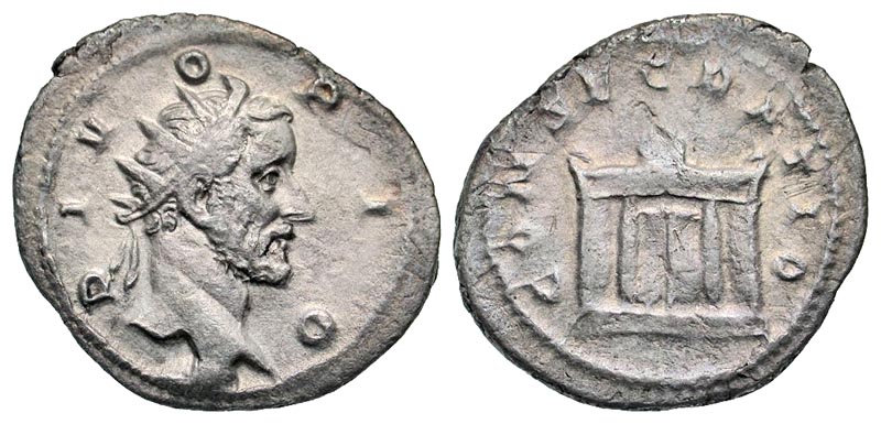 Lot 59-196. Divus Antoninus Pius. Died A.D. 161. AE antoninianus. Rome mint, Commemorative issue struck under Trajan Decius, A.D. 250/1.