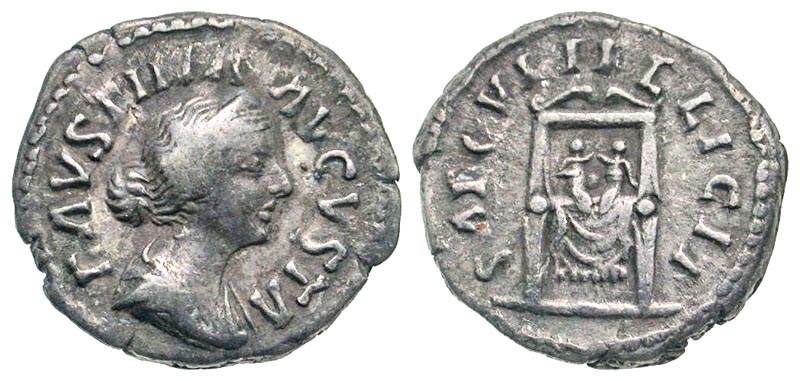 Lot 59-199. Faustina II. Augusta, A.D. 147-175. AR denarius. Rome mint, struck A.D. 154-157.