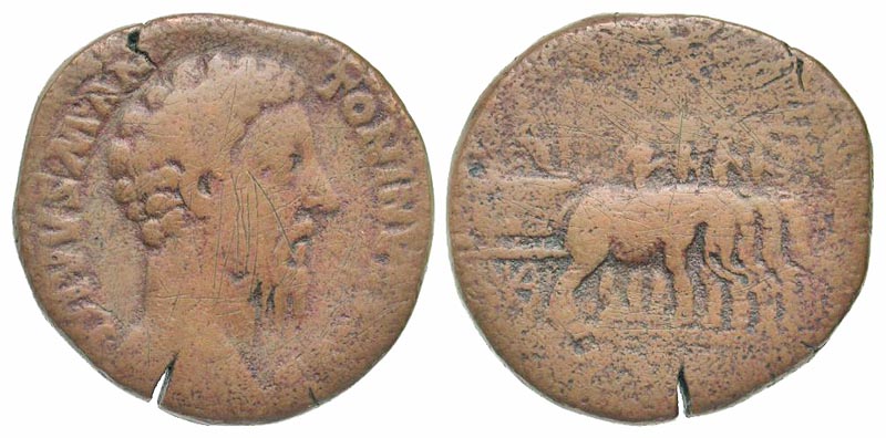 Lot 59-201. Divus Marcus Aurelius. Died A.D. 180. AE sestertius. Rome mint, struck A.D. 180. Rare.