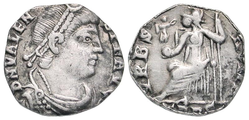 Lot 59-253. Valens. A.D. 364-378. AR siliqua. Trier mint, struck A.D. 367-375.