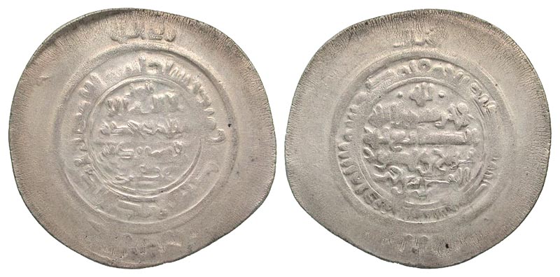 Lot 59-272. Banijurids (Abu Da'udids). al-Harith b. Harb. Fl. mid or late 4th/10th century AR multiple dirhems. Kurat Badakhshan mint, ND.