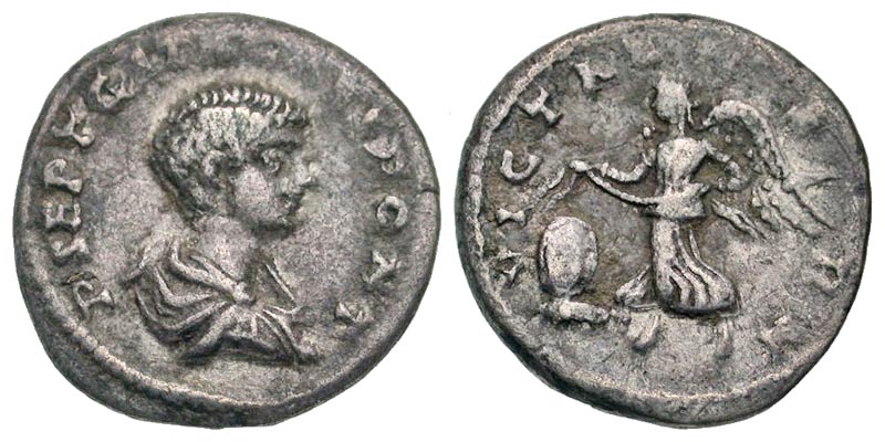Lot 60-239. Geta. As Caesar, A.D. 198-209. AR denarius. Rome mint, struck A.D. 200-205.