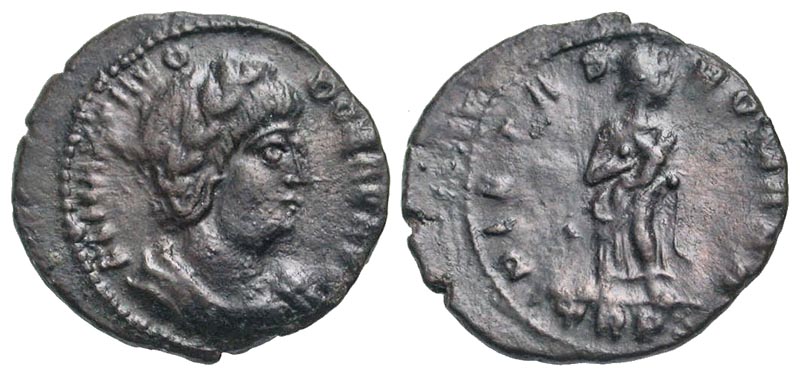 Lot 60-284. Theodora (posthumous issue). Died before A.D. 337. AE follis. Treveri mint, struck ca. A.D. 337-340. Scarce.