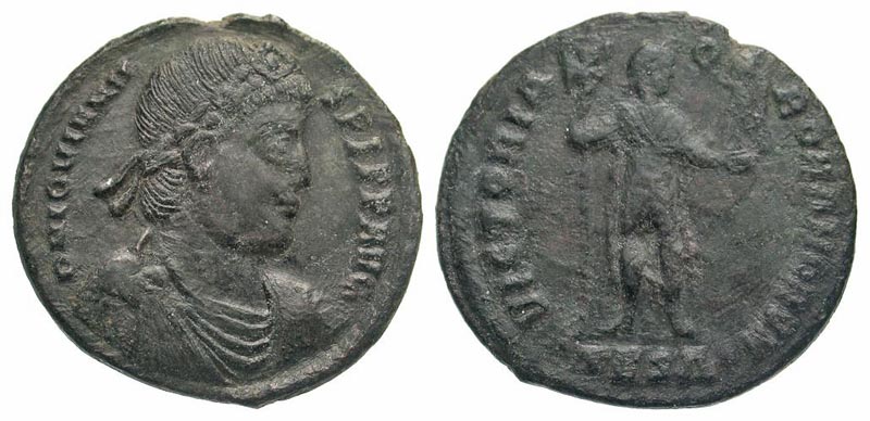 Lot 60-287. Jovian. A.D. 363-364. AE 2. Thessalonica mint. Ex George Spradling collection.
