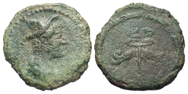 Anonymous. Domitian to Antoninus Pius. Æ quadrans (15.9 mm, 2.08 g, 6 h). Rome, A.D. 81-161. Bust of Mercury right, wearing petasus / S-C, winged caduceus. RIC 31. Fine.