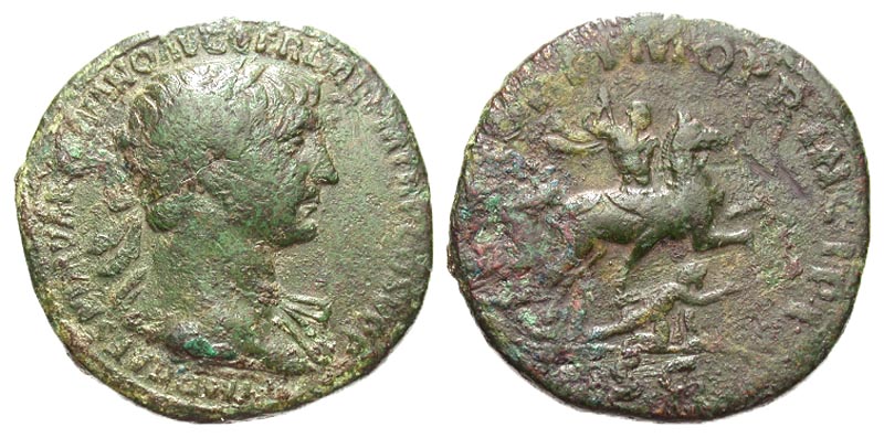 Lot 8-107. Trajan. A.D. 98-117. Æ sestertius. Rome, A.D. 103-111.