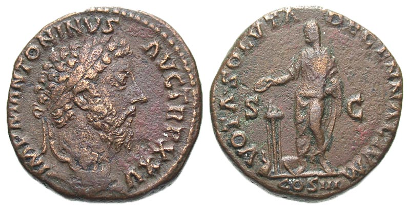 Lot 8-119. Marcus Aurelius. A.D. 161-180. Æ sestertius. Rome, A.D. 171.