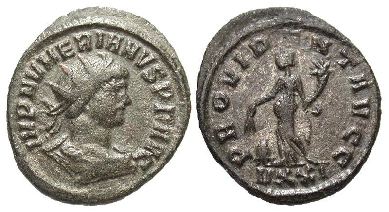 Numerian. A.D. 283-284. Æ antoninianus (23.2 mm, 3.47 g, 6 h). Ticinum. IMP NVMERIANVS PF AVG, radiate and cuirassed bust right / PROVIDENT AVGG, Providentia standing left, holding grain ears over modius and cornucopia; VXXI in exergue. RIC 447. VF.