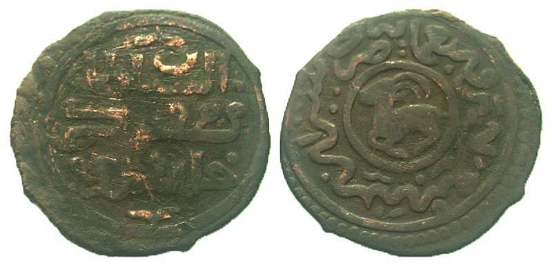 Lot 8-220. Ilkhans (Mongols of Persia), 3rd Period: Rival Khans. Muhammad Khan. 736-738/1336-1338. Æ fals. Shiraz, AH 737.