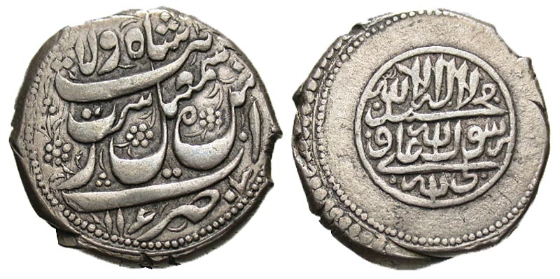 Lot 8-223. Safavids. Shah Ismail III. 1163-1169/1750-1756. AR 10 shahi. Resht, 1167 AH.