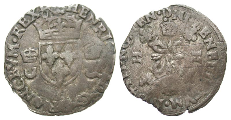 Lot 8-230. France, Royal. Henry II. 1547-1559. AR douzain aux croissants. La Rochelle.