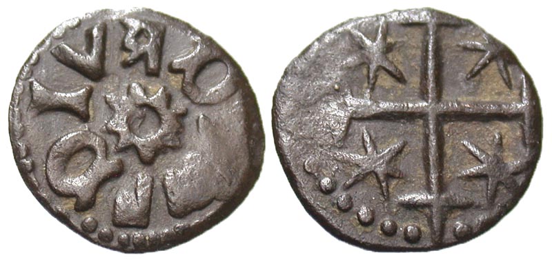 Balkans, Wallachia. Radu I. ca. A.D. 1377-1383. Æ ban (13.3 mm, 0.78 g). + Iω PDIVRD, sunburst / Cross crosslet; stars in each angle. MBR 78a. VF.