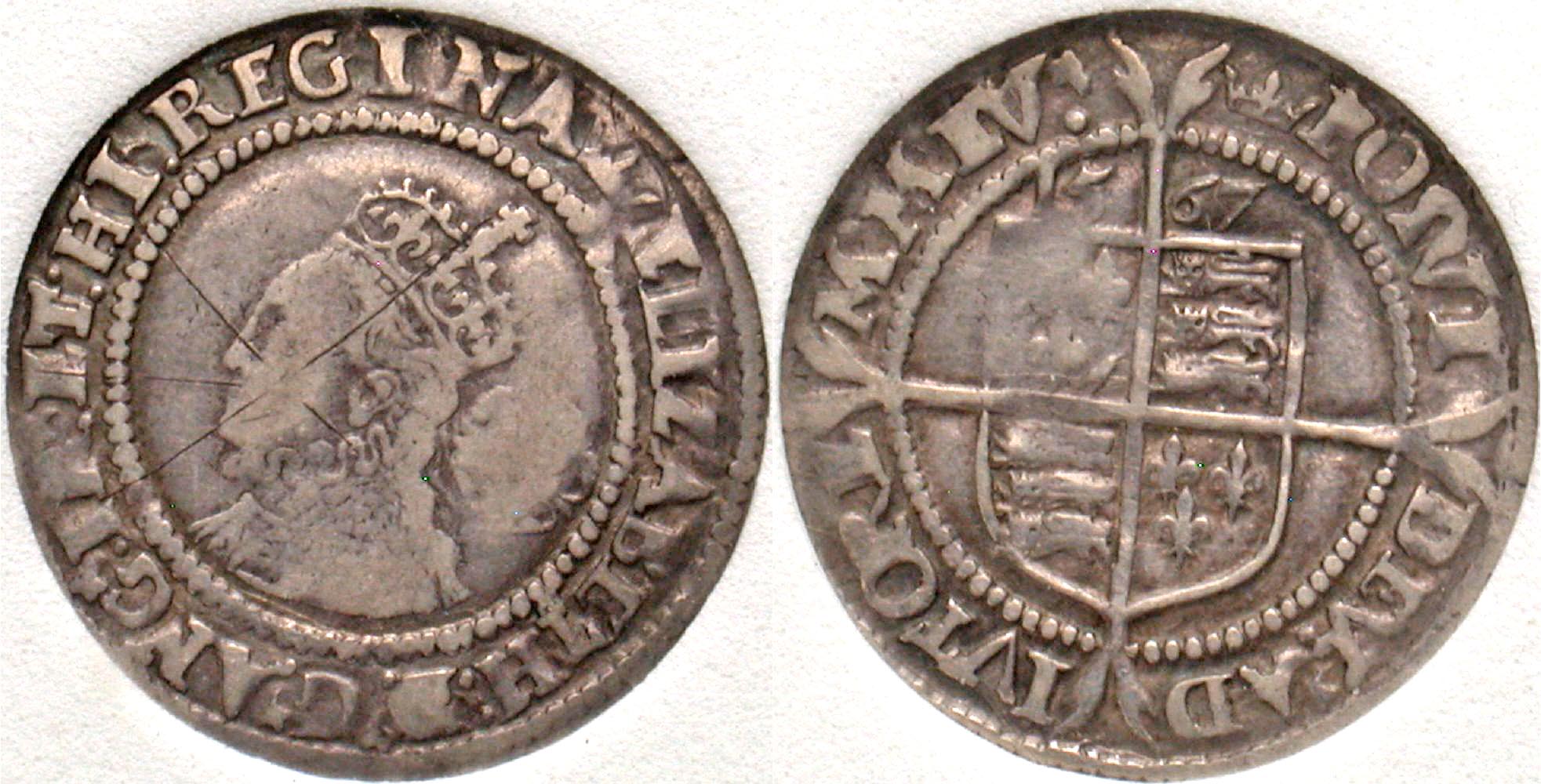 Lot 293. England. Elizabeth I. 1558-1603. AR sixpence. 4rd issue. London mint, struck 1567. Im: Coronet.
