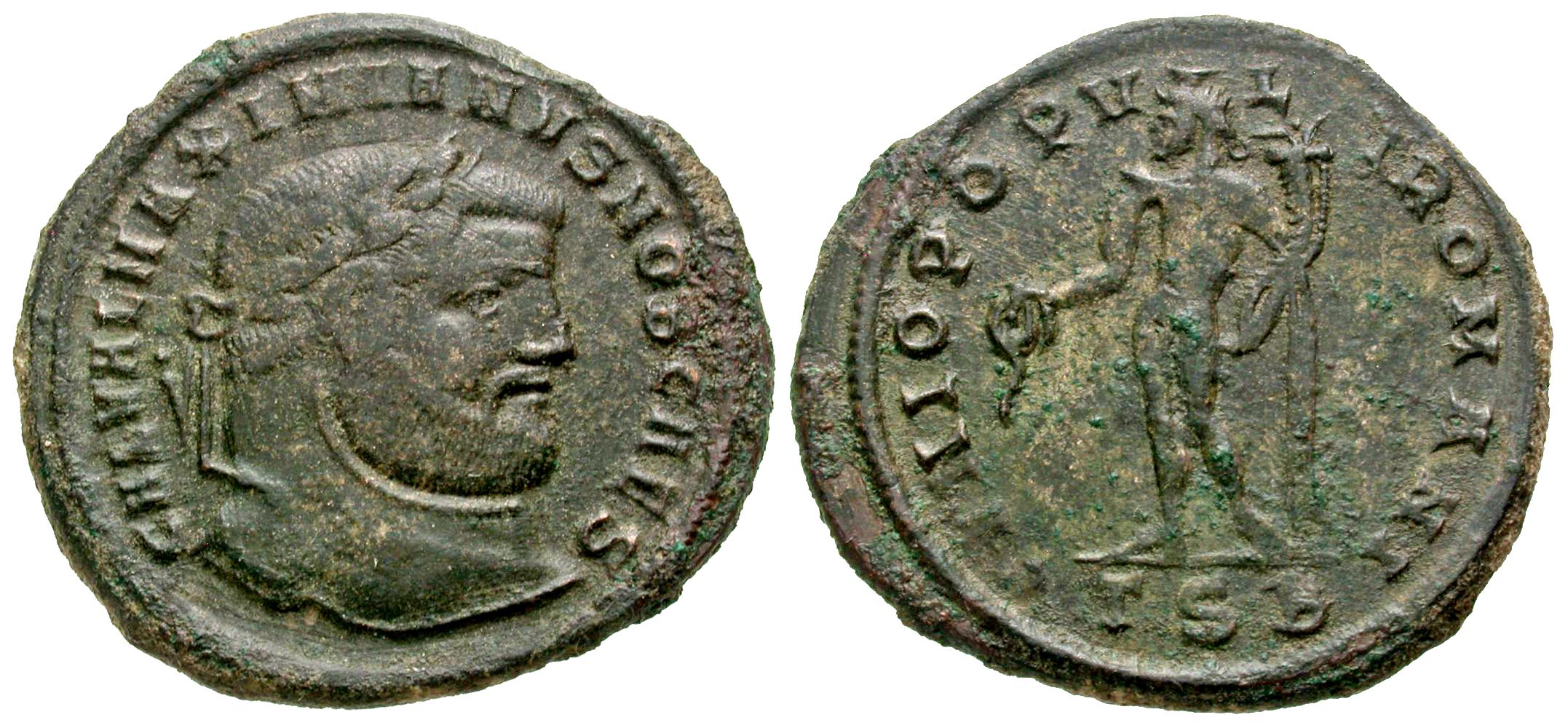 Lot 179. Galerius. As Caesar, A.D. 293-305. AE silvered follis. Heraclea mint, Struck A.D. 296-298.
