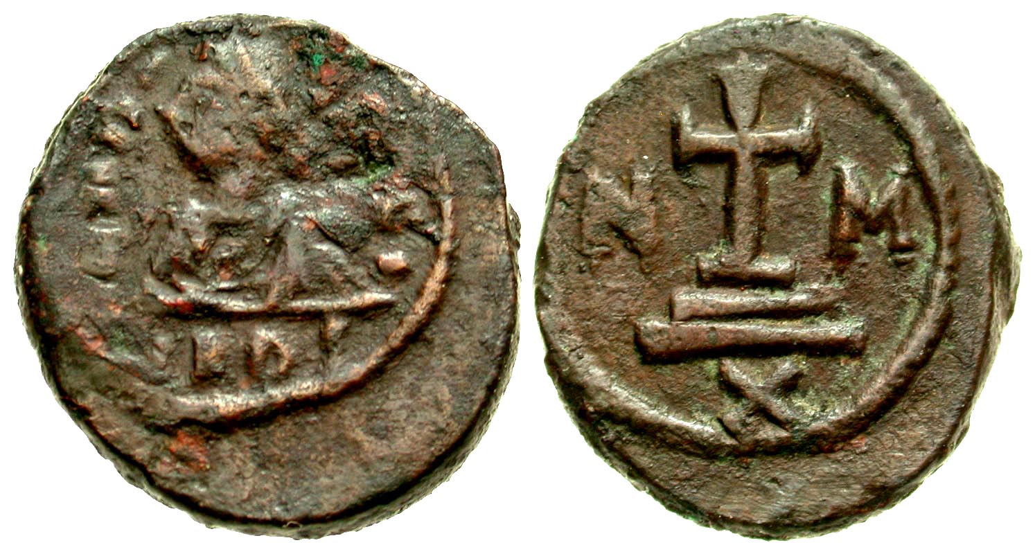 Lot 193. Maurice Tiberius. 582-602. AE decanummium. Carthage mint, struck 591/2.