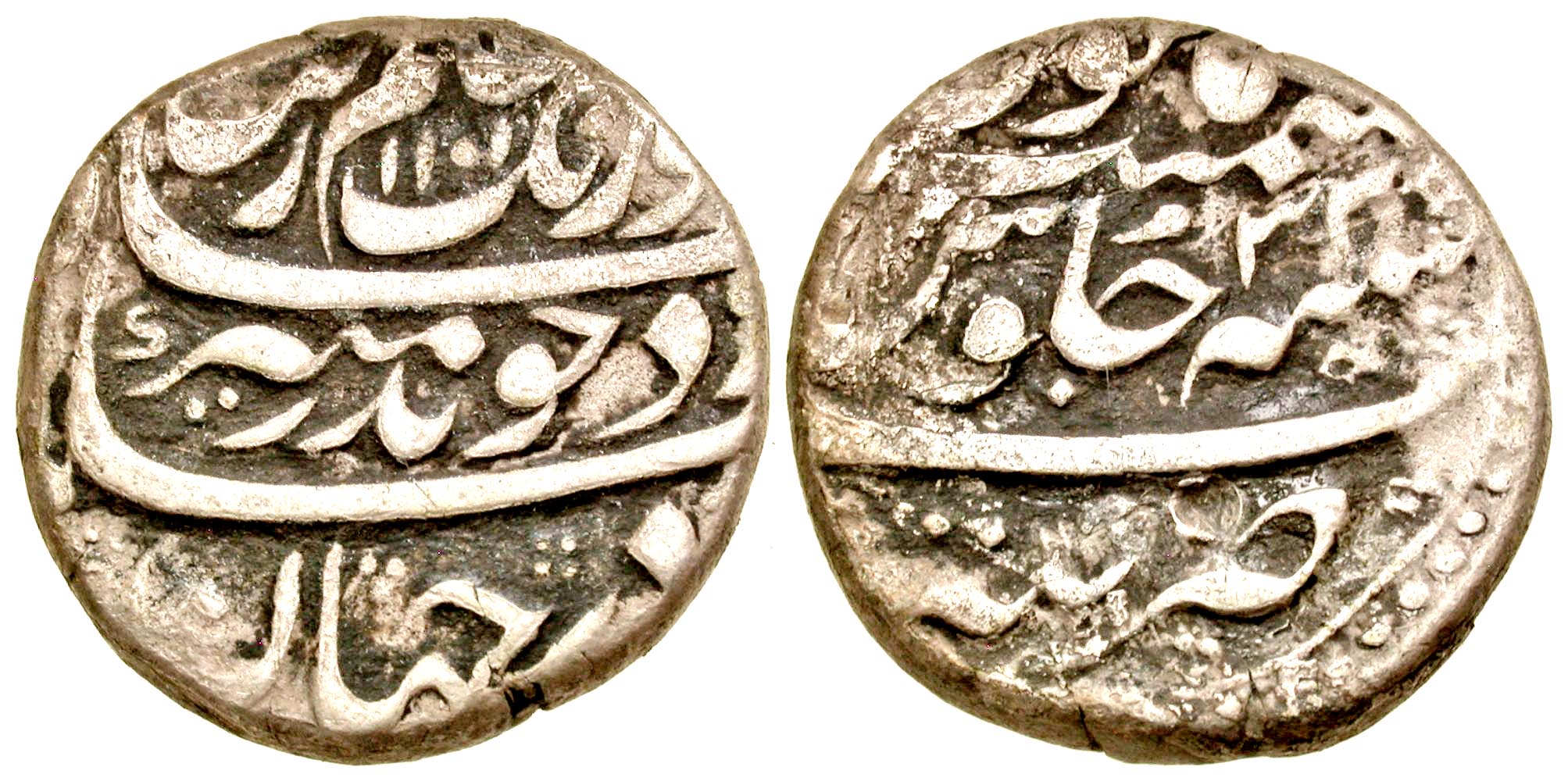 Lot 230. Mughal Dynasty. Aurangzeb Alamgir. AH1068-1118, 1658-1707 AD. AR Rupee. Tatta mint, AH110(1 or 2), RY 33.