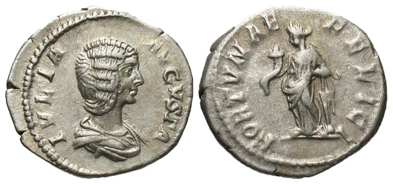 Lot 16-153. Julia Domna. Augusta, A.D. 193-217. AR denarius. Rome mint, A.D. 210. Ex Dave Surber collection.