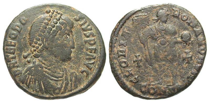 Lot 16-205. Theodosius I. A.D. 379-395. Æ 2. Constantinople mint, A.D. 392-395. Ex Dave Surber collection.