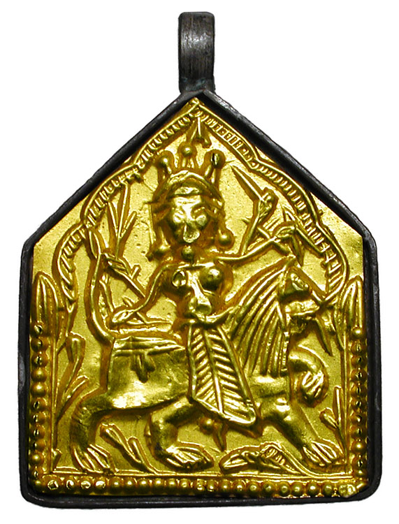 Lot 980. Gold plated Amulet of Shiva Riding Bull. India, XVIII-XIC Century AD.