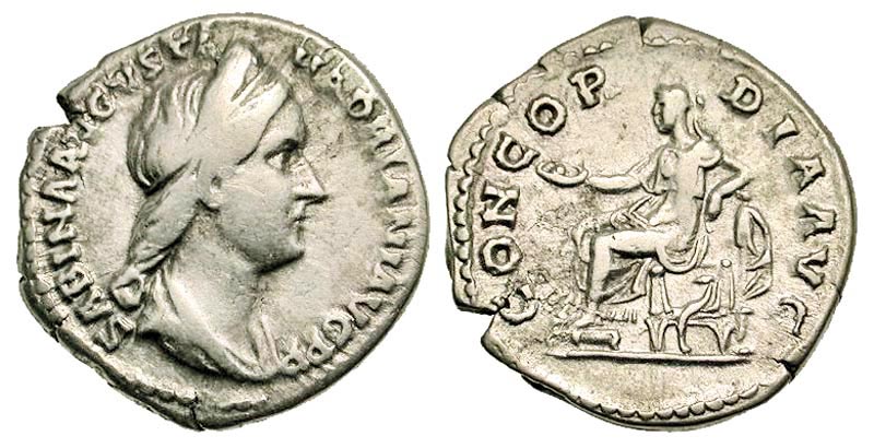 Lot S71-189. SABINA, wife of Hadrian, 117-138 AD. AR Denarius