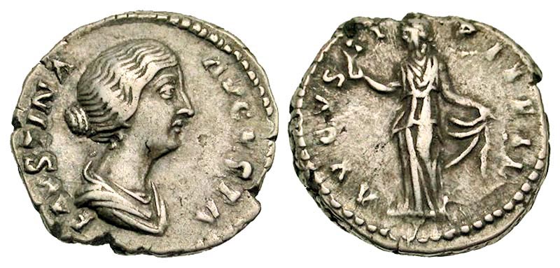 Lot S71-197. FAUSTINA JUNIOR, wife of Marcus Aurelius, d. 175 AD. AR Denarius