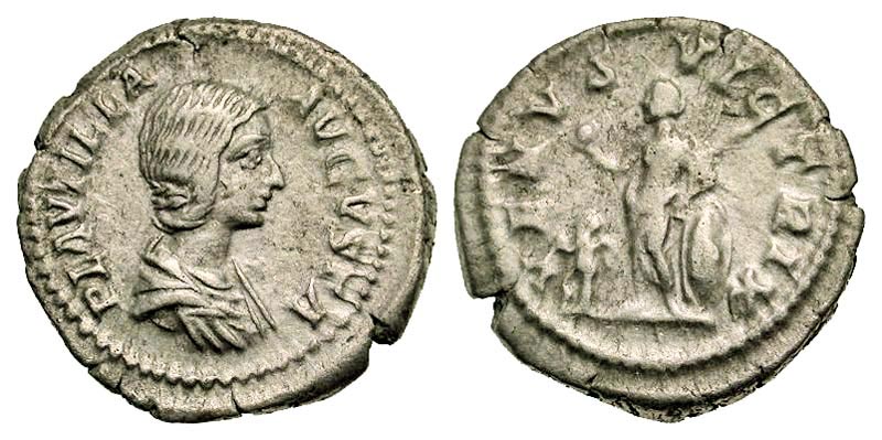Lot S71-206. PLAUTILLA, wife of Caracalla, died 212 AD. AR Denarius. Scarce.