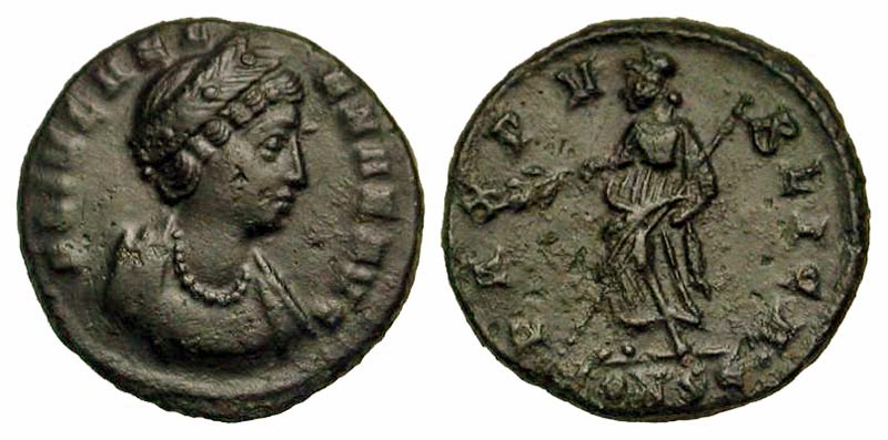 Lot S71-242. HELENA, mother of Constantine, d. 328 AD. AE Reduced Follis. Scarce.