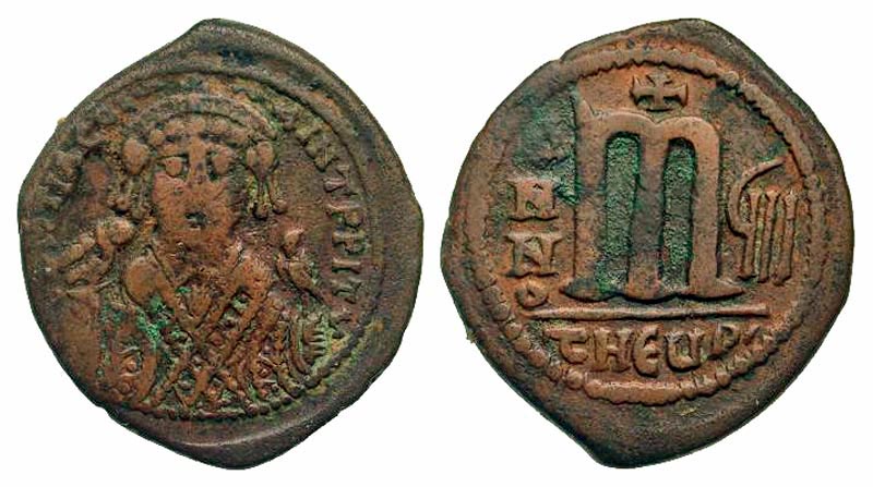 Lot S71-252. BYZANTINE EMPIRE. Maurice Tiberius. 582-602 AD. AE Follis