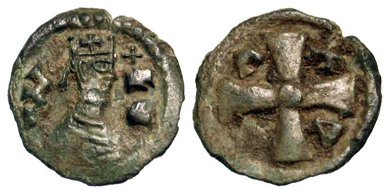 AXUM. Ioel (Joel), VI -VIII Century AD. � Unit. Crowned draped bust / Cross. M-H.131. Uneven XF, earthy black patina. Full legend, nice cross.