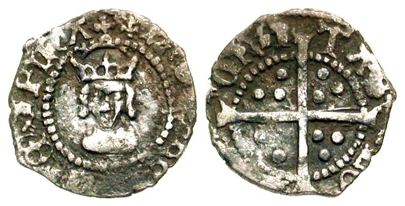 ENGLAND. Henry VIII, 1509-1547 AD. AR Halfpenny (0.43 gm) of London, i. m. Lis. Crowned bust facing / Long cross with three pellets in each angle. S.2356. Toned aVF.